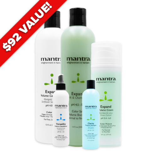Experience fuller, cleaner, more lifted hair with Mantra’s ultimate volume-boosting bundle. Powered by vegan, naturally derived ingredients, this 5-piece system delivers weightless body, flexible movement, and a clean, refreshed scalp — all without harsh chemicals or heaviness.